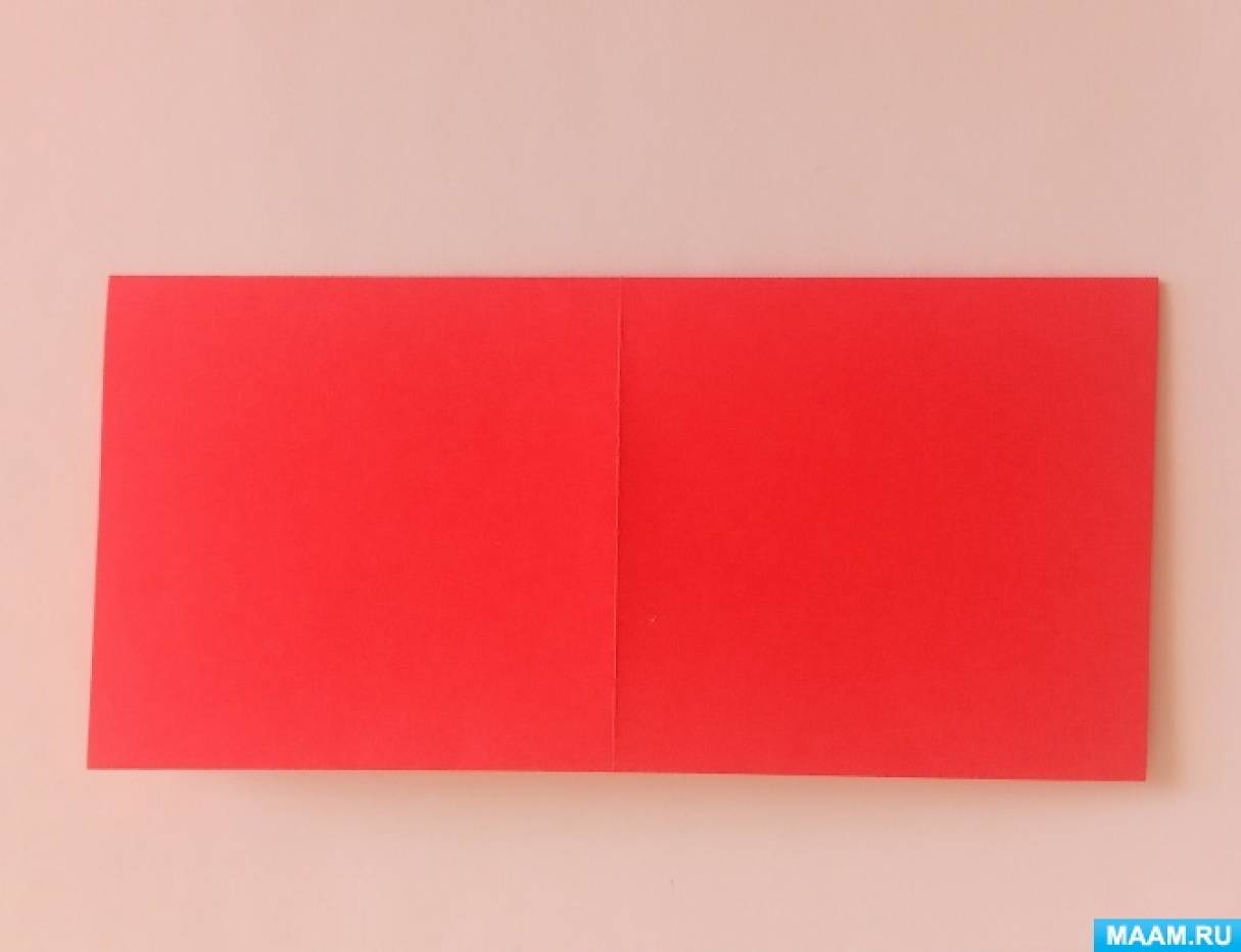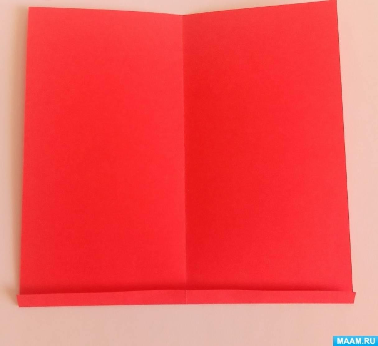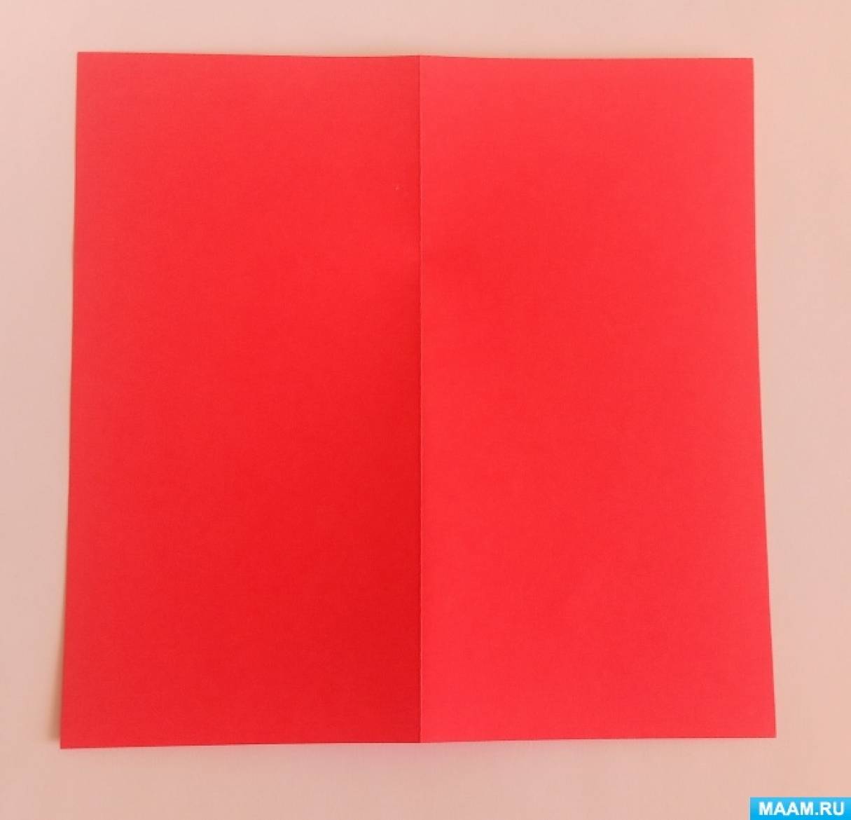 - квадрат цветной бумаги складывают пополам, разгибают;