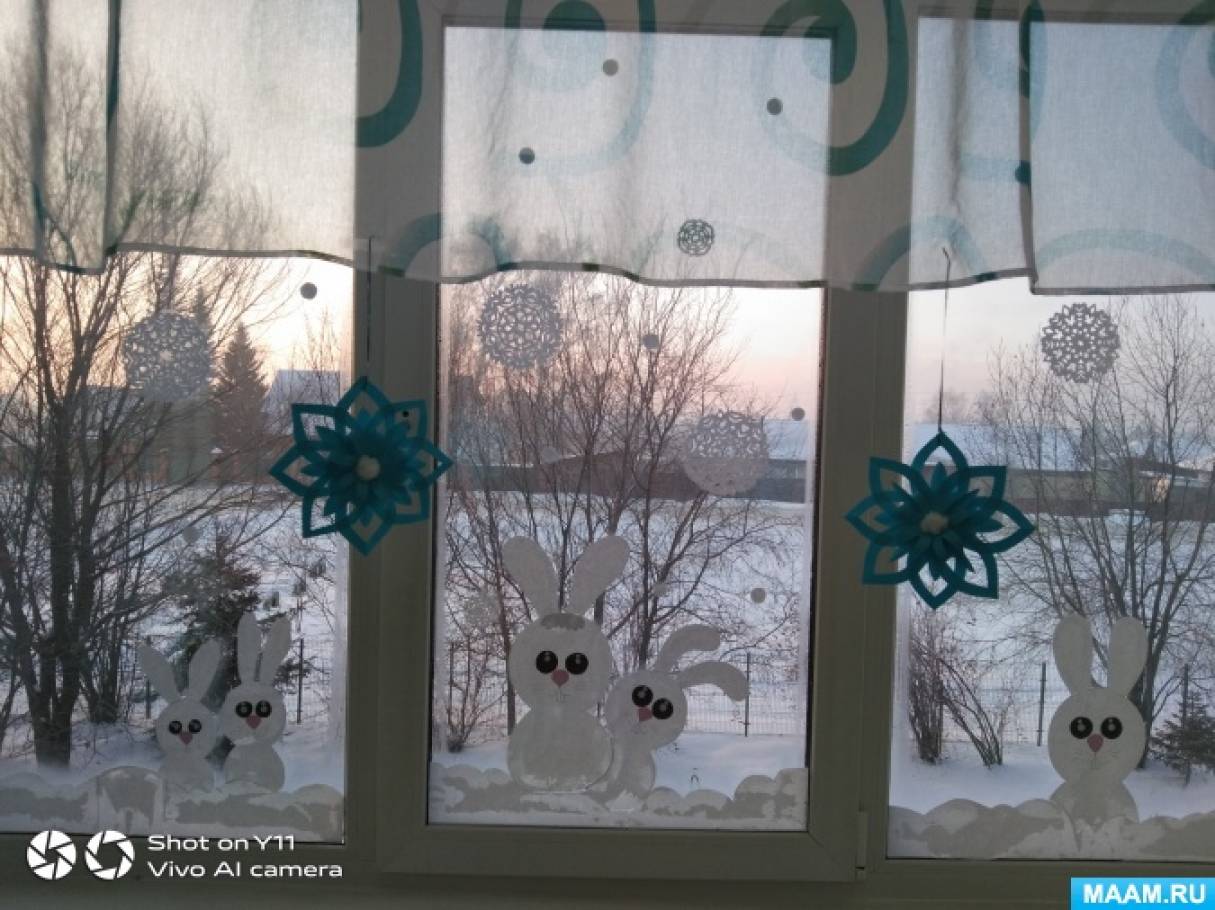 После — вырезать по контуру, развернуть и можно украшать окна к Новому году.