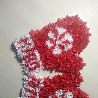 Декорировать нужно начинать до сшивания половинок. Лицевая часть варежки в гирлянде может быть украшена больше, а задняя скромнее.