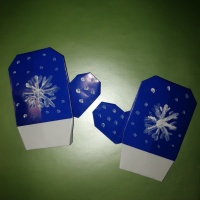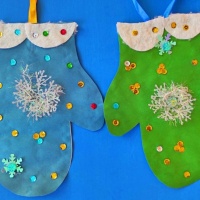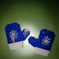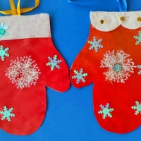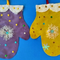 Такие варежки можно изготовить как двойными (чтобы во внутрь можно положить какой нибудь подарок, так и из одного слоя — такие варежки вполне можно использовать как елочные игрушки или для гирлянд.