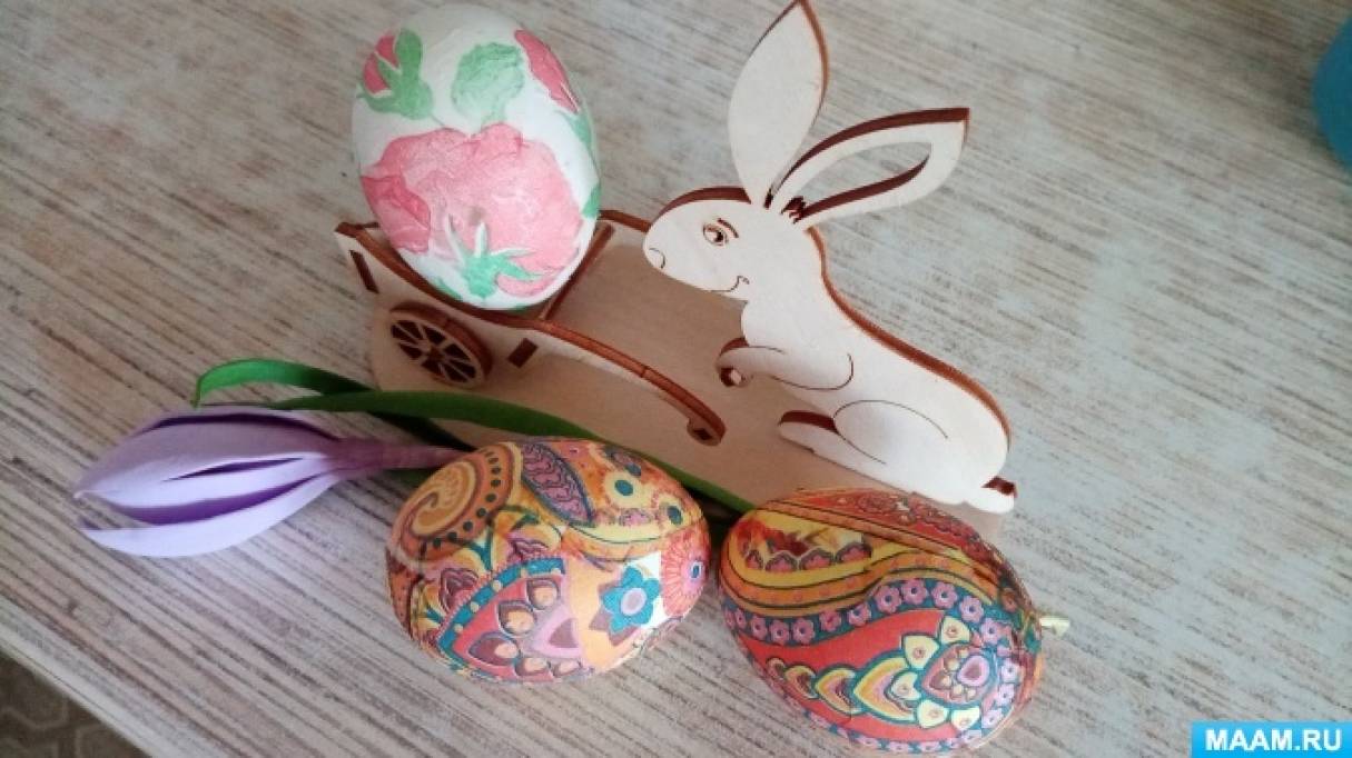 Детский мастер-класс «Декупаж пасхальных яиц» Доброго времени суток, уважаемые коллеги! В преддверии Светлого праздника Пасхи, мы готовили для родителей небольшие сувенирчики, пасхального.
