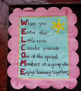 С другой стороны на дверь можно приклеить правила поведения в данном классе или же обращение учителя.