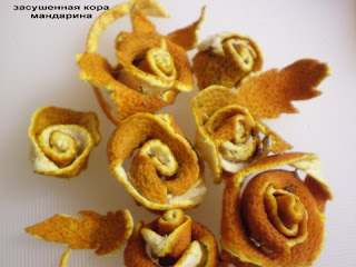 Розы из апельсиновой кожуры. Розы нужно хорошенько подсушить, а потом можно использовать в различных поделках: