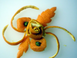 Вот такой не сложный декор из цитрусовой кожуры может сделать любой желающий не обладающий навыком карвинга.