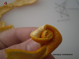 Не за горами Новый год и на столе обязательно будут мандарины и апельсины. Не спешите выбрасывать кожуру, попробуйте сами или вместе с детьми создать красивые и ароматные цветы, которые можно использовать для украшения поделок.