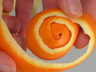 Для их изготовления нам потребуется срезать кожуру с цитруса по спирали, как это сделать можно посмотреть в этой статье Если спираль получилась широкой, её можно разрезать как показано на фото.