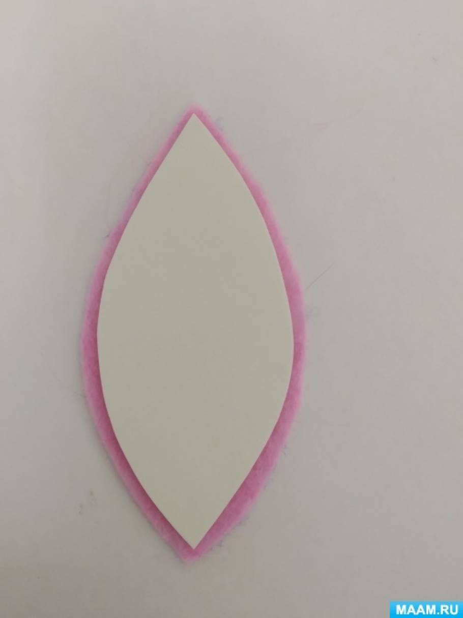 1. Из картона вырежьте шаблон листика. По шаблону вырежьте из меха 1 деталь (ворс должен быть направлен вверх от основания листика, 1 деталь из фетра. Вырезайте остро заточенными ножницами, чтобы не испортить меховой ворс, старайтесь резать только трикотажную основу. Режьте с изнанки!