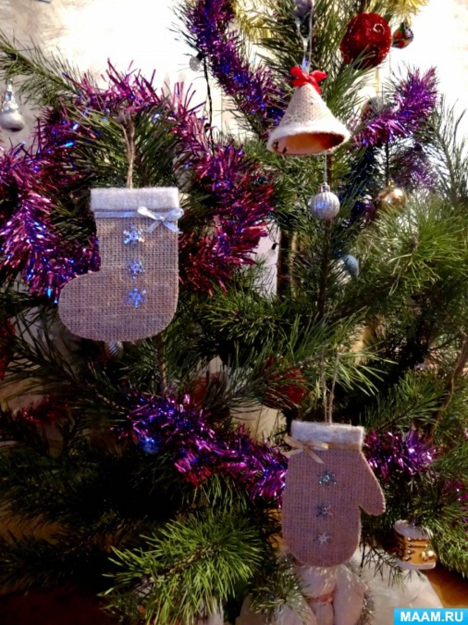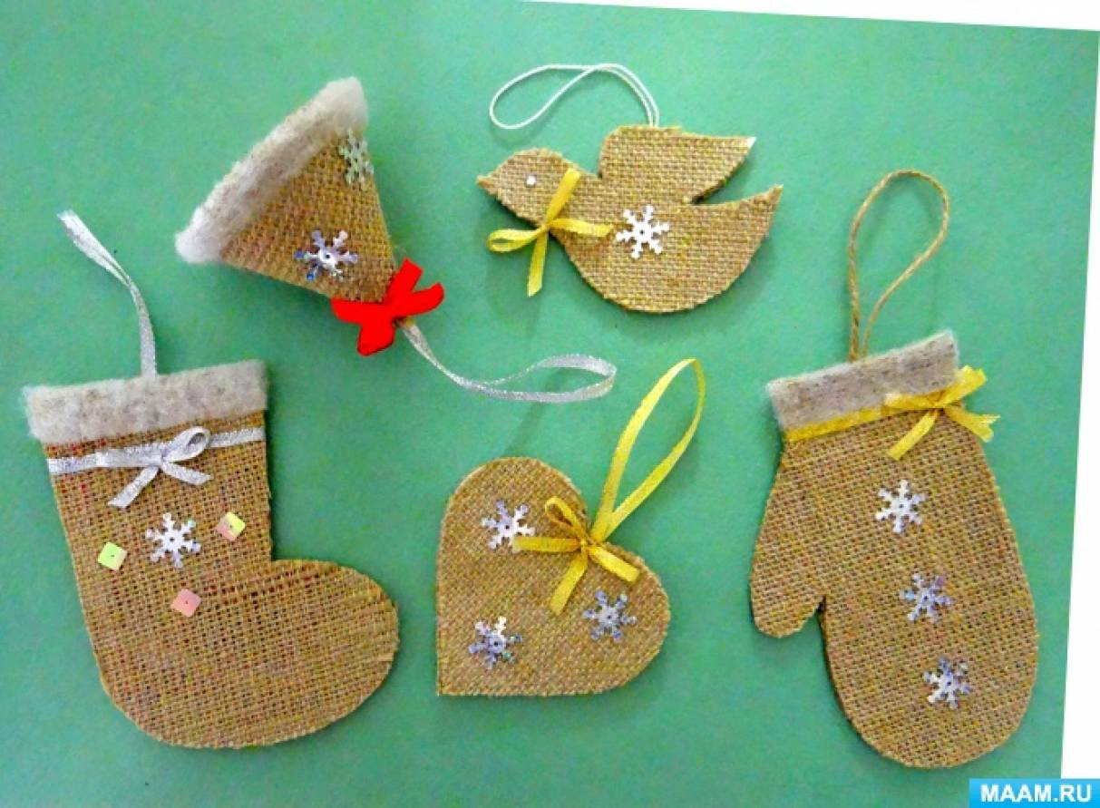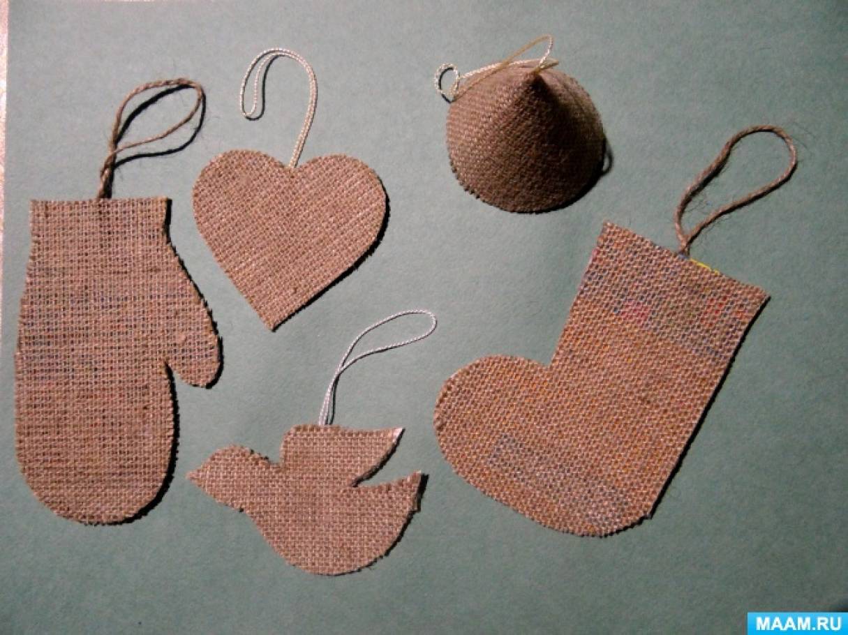 Отличные новогодние украшения можно сделать из простой мешковины.
