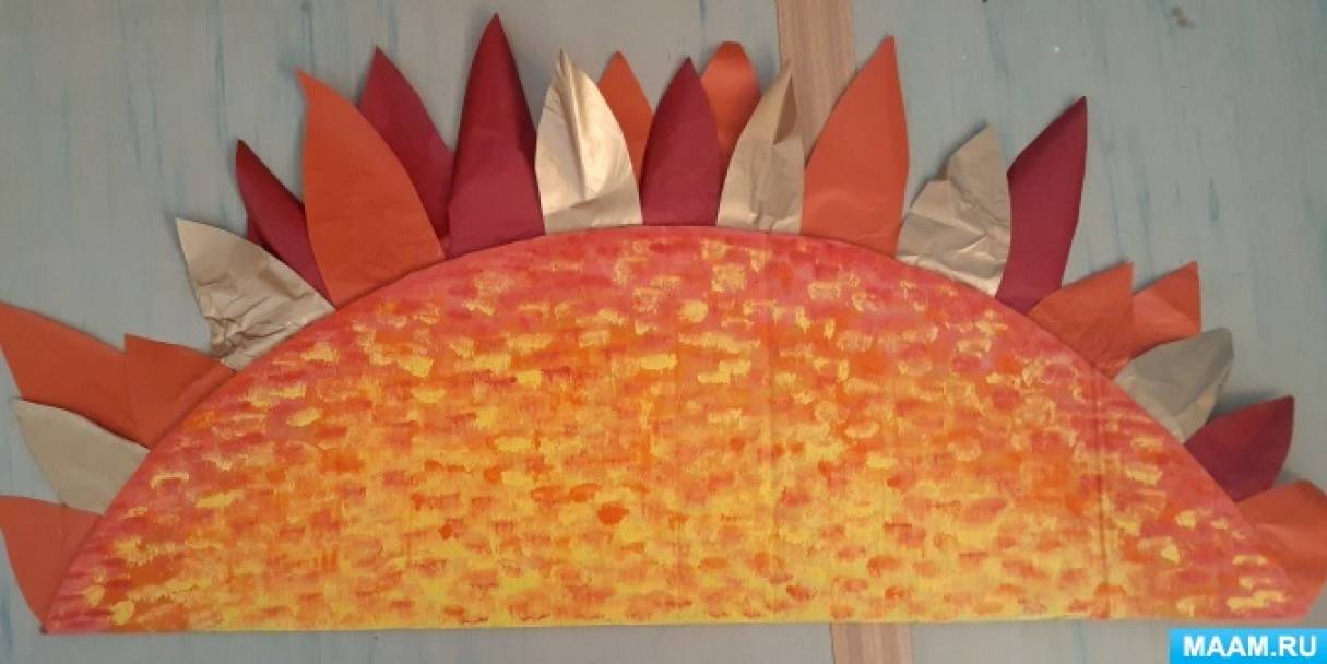 - Планеты клеятся по кругу, в самом центре находится большое оранжевое Солнце.