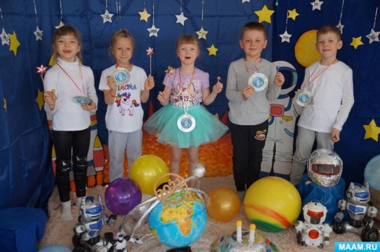 Ко Дню космонавтики во многих образовательных учреждениях оформляют выставки детских работ, украшают музыкальный зал, фойе, групповые комнаты и приемные. Все заняты детом, работа кипит. Дети рисуют и лепят, делают поделки своими руками. Воспитатели пишут сценарии, подбирают тексты произведений и демонстрационный материал, иллюстрации. Многие участвуют в разных конкурсах, проводят развлечения и праздники, тематические беседы и просмотры.