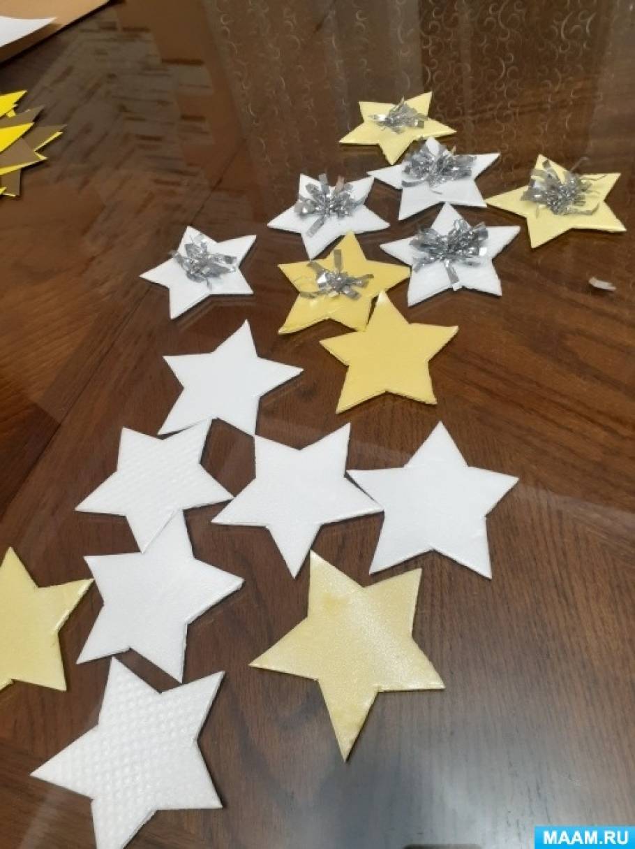 - Блёстки в виде звёздочек, золотые и серебряные;