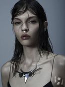 — Меня кольца в нос интересуют в первую очередь как нетривиальные украшения и как возврат гранжевой моды, пик которой пришёлся на мои подростковые годы, когда чувства и эмоции были острыми и запоминающимися. И ещё мне импонируют их корни — из Индии. Мне нравятся сари и кроптопы из моей коллекции Ermakovishna Sisters — это отсылки к ним. Я ношу брюки с юбками, и без серёжки в носу эта картинка была бы не цельная. Где я их беру? Друзья привозят оригиналы из Индии, недавно большой выбор появился в корнере J-Space Store, а ещё скоро будет выпущено украшение моего собственного дизайна, созданное совместно с ювелирной мастерской The Just Diamond. Серебряные каффы в нос вы можете найти на сайте jspacestore.com