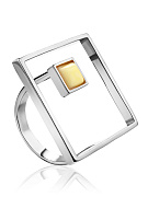 Трендовое кольцо из серебра и янтаря медового цвета «Гравитация»: 206310136