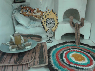 Домик у нас уже был, чайный сервиз из желудей — работа Василисы и ее мамы, а героев нарисовала на картоне с подставкой, так что дети ими играют.