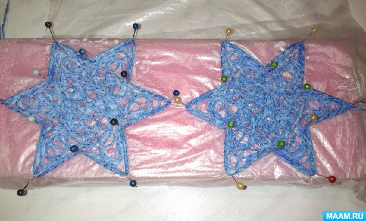 Звёздочки из ниток пропитать клеем и оставить до полного высыхания.